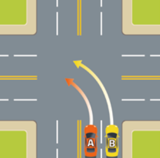 양 차량이 교차로에서 동일방향으로 동시 또는 유사한 시각에 진행함에 있어, 크게 또는 작게 좌회전을 하다가 왼쪽에서 진행하는 A차량과 오른쪽에서 진행하는 B차량이 충돌한 사고이다.
